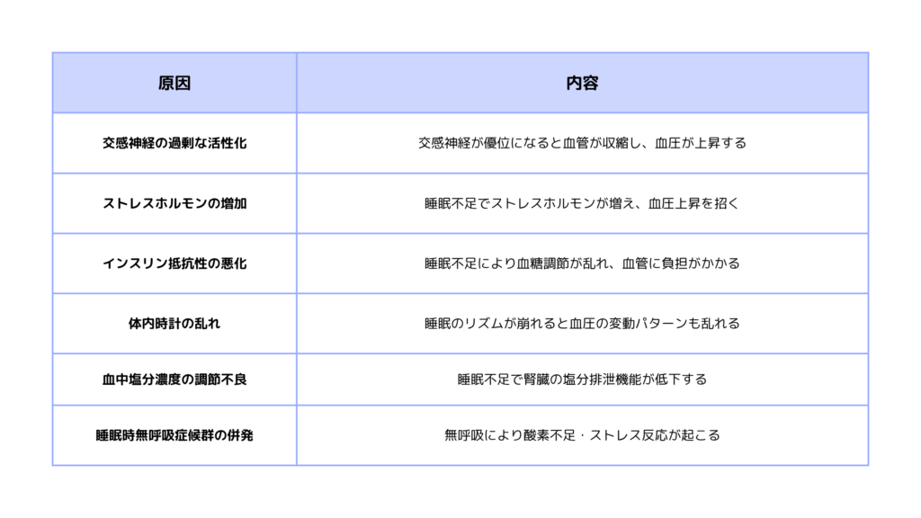 睡眠不足で血圧が上がる主な原因一覧
